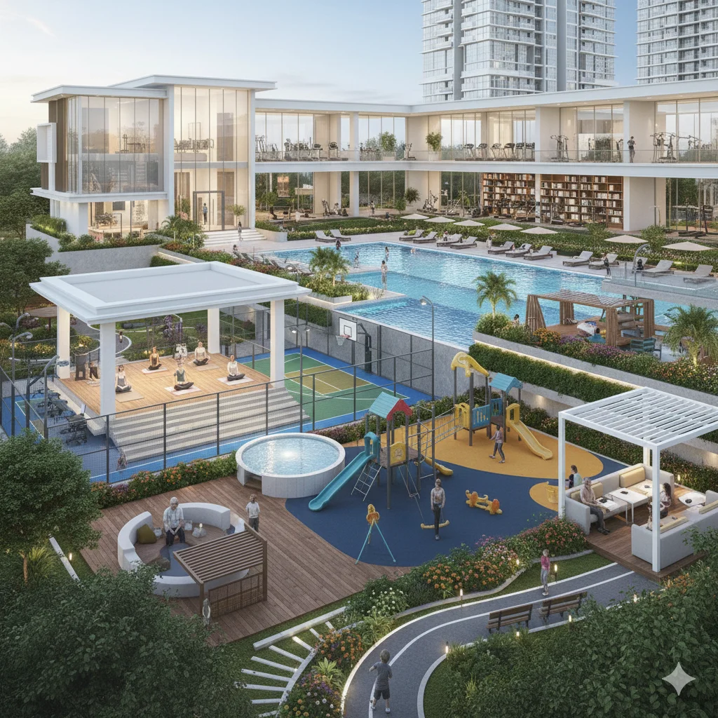 The development is a future-ready, high-security campus with premium amenities spread across multiple levels.