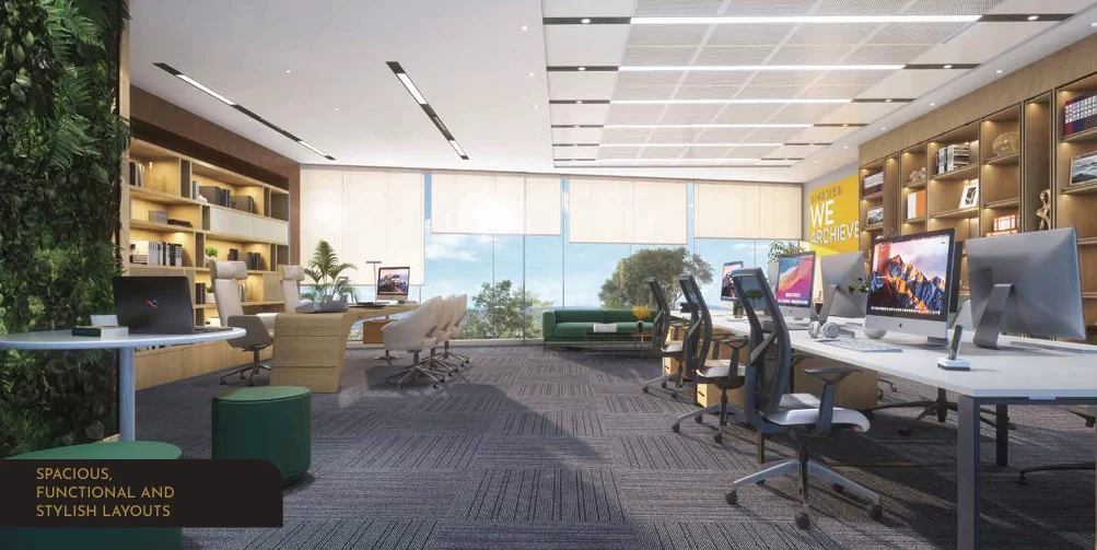 Sustainable Workspace: Designed as an environmentally sustainable architectural wonder that balances luxury with eco-friendly planning.