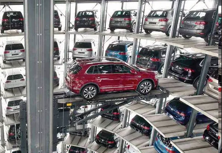 Fully Automated Robotic Parking: High-tech system with 194 car parking capacity and start-to-finish diagonal motion.
