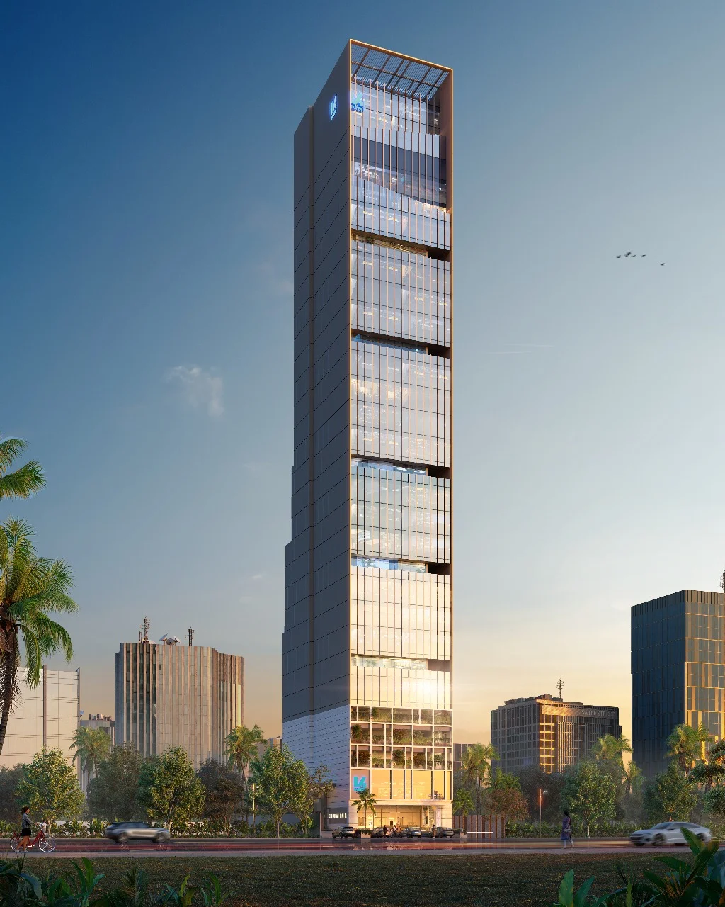 Climate-Responsive Design: Features a cladded glass facade intelligently designed to harvest natural light while minimizing heat gain.