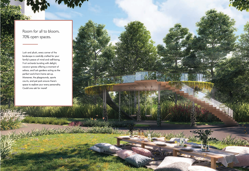 Expansive Openness: A grand 70% of the project is dedicated to open spaces, including fruit orchards, coconut groves, and landscaped gardens.