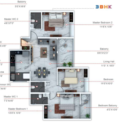 Optimal Lighting: Layouts are meticulously planned to ensure abundant natural daylight throughout the day.