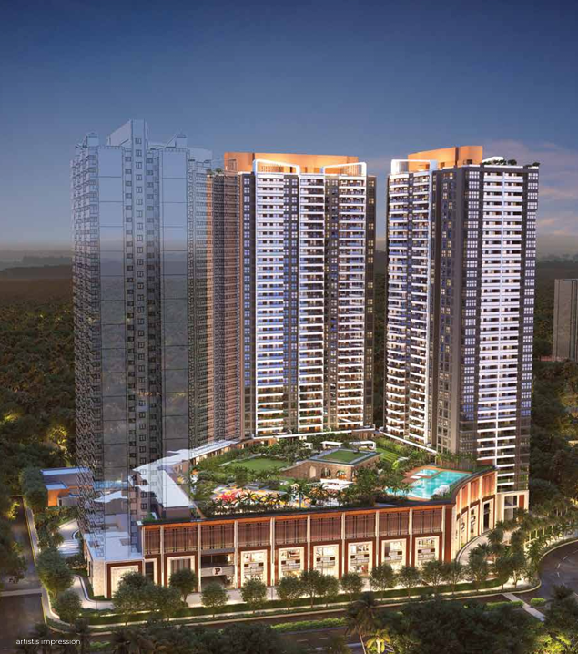 Architecture: Features three majestic 25-storey high-rise towers designed with a modern glass façade.