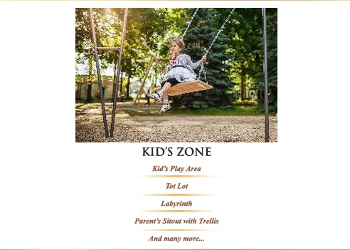 • Child Development: Includes a Crèche, SportyBeans training area, and an adventure mounds zone.