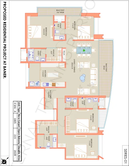 The carpet areas range from 2028 sq.ft. for 4BHK & 2209 for 4.5 BHK.
