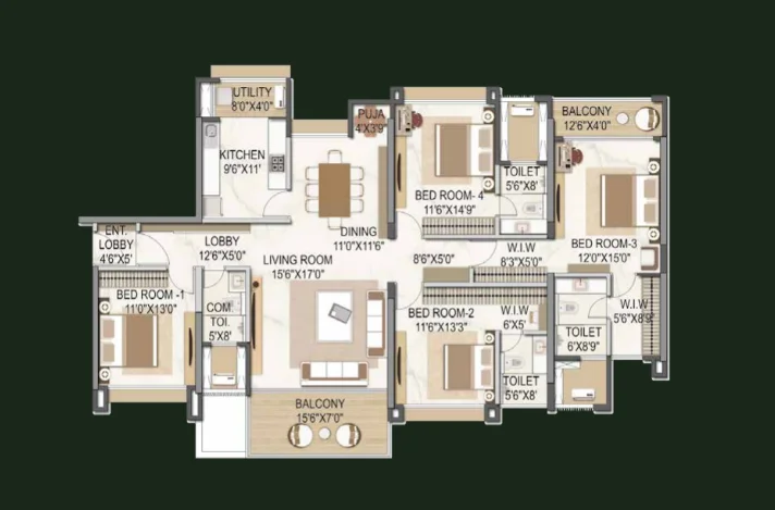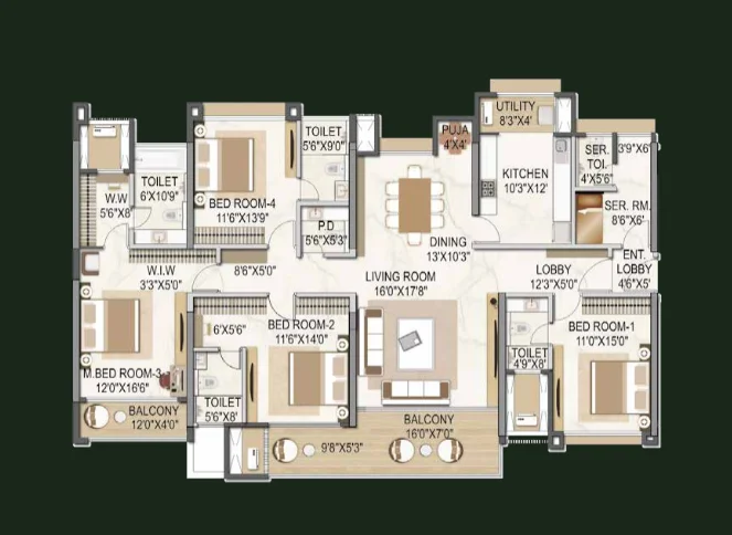 Homes: Offers spacious, Vaastu-compliant 3, 4, 4.5, 5, and 6 BHK residences with sweeping sky decks.