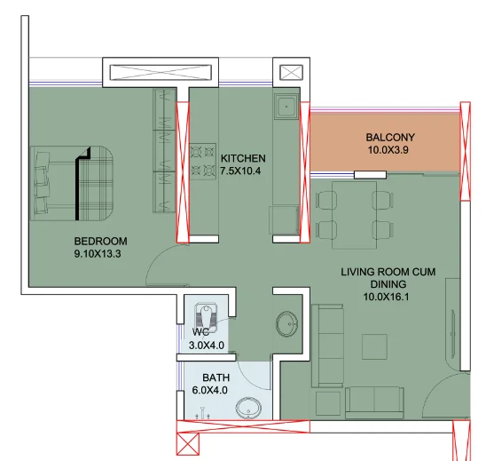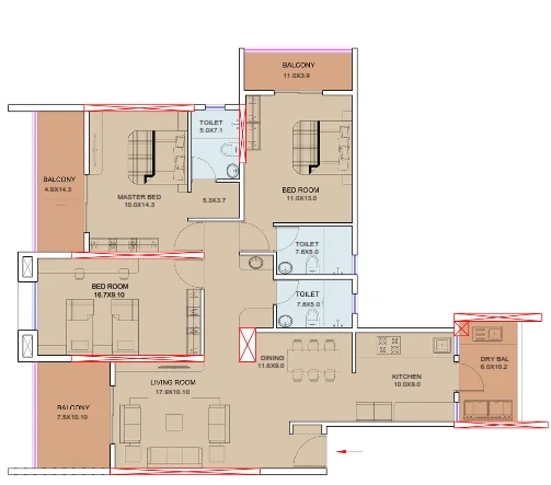 Spacious Layouts: Offering large 2 BHK and 3 BHK configurations with total areas up to 100.57 sq. mtrs.