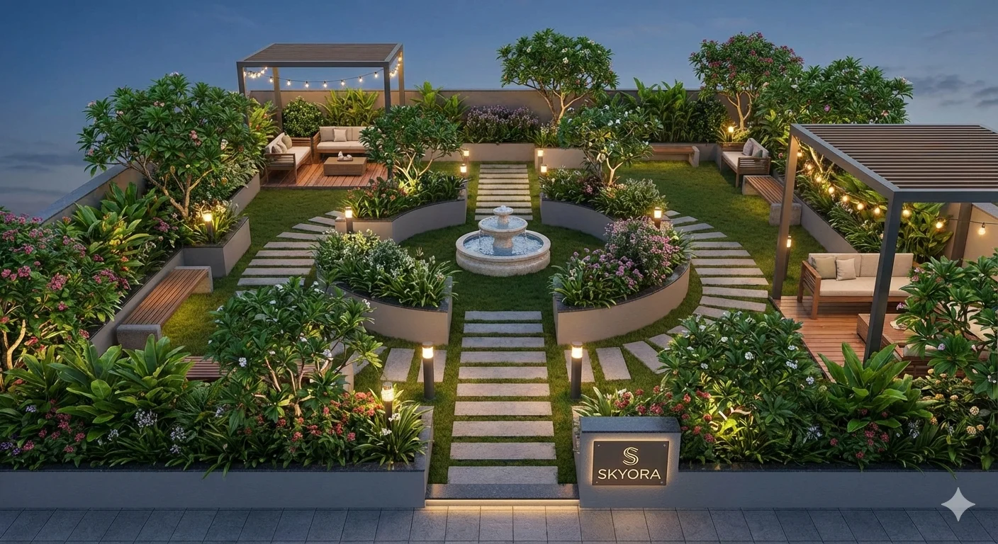 • Sky Wellness Deck: Features a dedicated Yoga hall, acupressure pathways, and an “Oxygen Park” for holistic health.