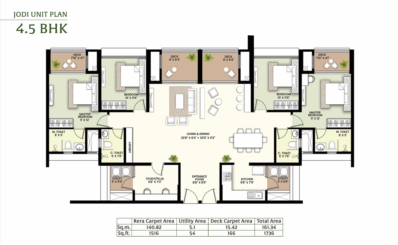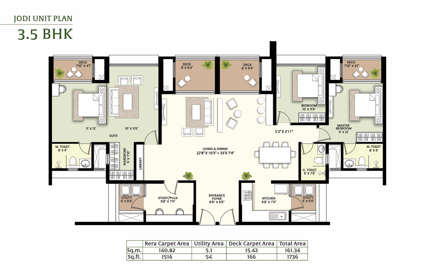Residences: Offers apartment configurations including 2 BHK, 3 BHK, 3.5 BHK & 4.5 BHK .