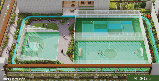Sports Courts: Provides a Futsal Court, Tennis Court, and a Badminton Court.