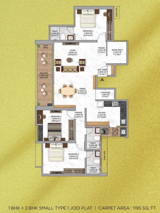 The project offers premium 2 BHK (Small and Large) and 3 BHK apartments, including unique jodi flat options.