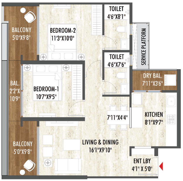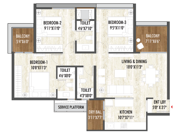 Spacious Configurations: Offers thoughtfully designed 2 and 3 BHK homes to suit modern family needs.
