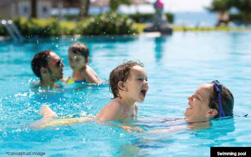 Swimming Pool: Features both a main pool and a separate kids’ pool for family recreation.