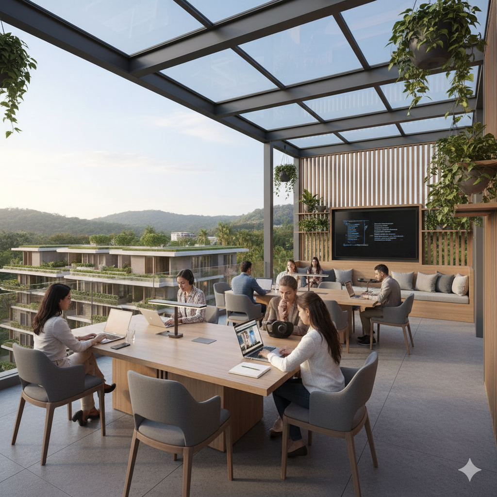 • Work Zone: Provides dedicated Co-working Pavilions for a professional environment within the premises.
